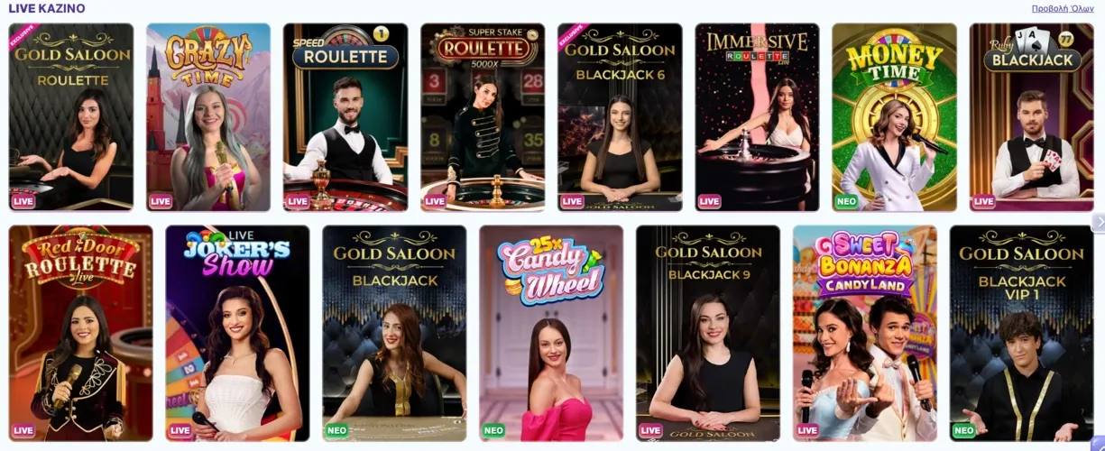 Διατίθενται πολλαπλές εκδόσεις blackjack, ρουλέτας, μπακαρά και πόκερ. Για μια πιο χαλαρή εμπειρία, τα game shows όπως το Crazy Time και το Sweet Bonanza Candyland προσφέρουν μοναδική ψυχαγωγία.